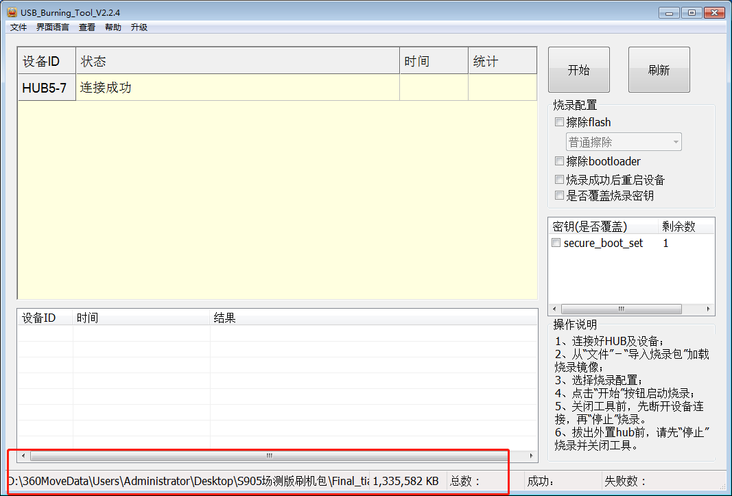 1. 将T7板子的跳线从USB方向向后移位,移动后如下图所示  1. 接上刷机线,一头接在跳线旁,另一头接上电脑USB 口,如下图所示  3、设备接上VGA线、电源线、开关,按住HDMI口下方复位键的同时打开开关,7s左右后画面停留在开机界面松开复位键   4、打开T7刷机工具  5、安装USB串口  6、进入设备管理器检查USB串口是否安装完成,若没有安装完成,则停留在该页面将步骤3重复一遍  7、查看刷机工具,显示连接成功  1. 点击文件->导入刷机包,导入后路径显示在最下方   9、导入刷机包后点击开始  10、进度条100%时烧录成功,断开设备后点击停止,关闭工具